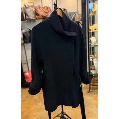 AKRIS punto Black Angora Wool Belted Asymmetrical Jacket Sz. 6